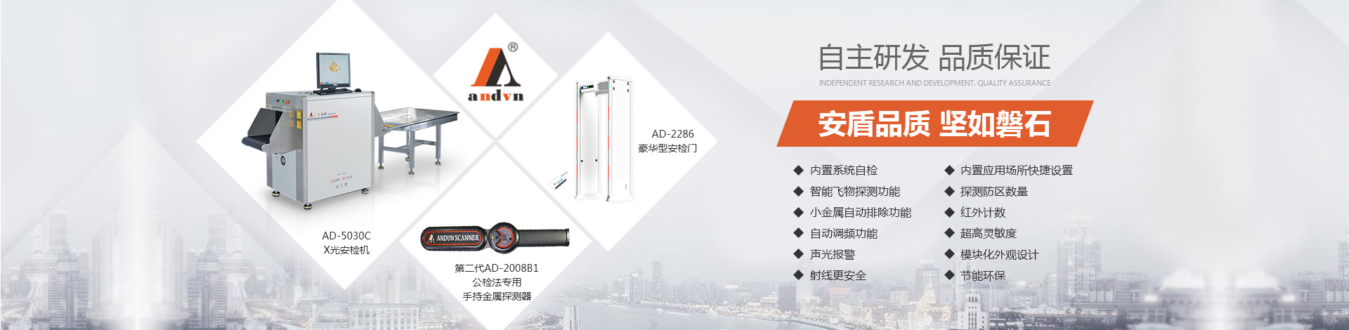 目前公司技術底蘊日益豐厚,擁有多項國家專利,在產品開發和創新方面有較深的制造經驗?!鞍捕芷焚| 堅如磐石”是安盾人永恒不變的發展理念,公司目前已通過國際質量體系認證、國際環境體系認證、國際職業健康體系認證、產品已通過國家安全防范報警系統檢測中心和公安部安全與用電子產品質量檢測中心合格認證,并取得所有型號檢測報告,《GB15210-2003通過式金屬探測門》標準;并獲得國家高新技術企業認證、國家AAA級信用認證,歐盟CE認證、ROHS認證、美國FCC認證、廣東職業衛生檢測中心頒發的檢測報告、東莞市環境保護局頒發的《輻射安全許可證》,中國人民解放軍認證產品、中華人民共和國進出口企業、愛心公益企業等榮譽稱號;先后被當選為中國安全防范產品行業協會會員單位、廣東安防行業協會理事單位、東莞市安防行業協會常務副會長單位、中國安檢排爆聯盟常務理事單位、連續五年榮獲廣東省守合同重信用企業、中國警用裝備十大品牌、中國十大特種裝備品牌、科技型中小企業、廣東省高新技術產品等榮譽稱號、安盾集團平均每年服務至少200場大型活動安保任務。